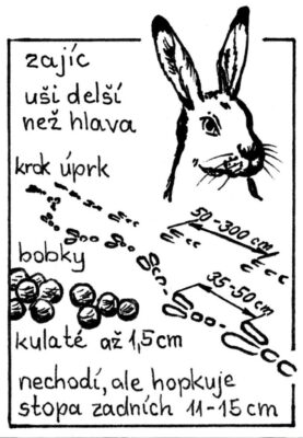 Hříčka pro stopaře. Využijte čerstvý sníh na výpravě a vyhledejte co nejdelší skok ve stopě zajíce a srnce.