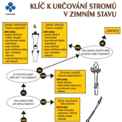 Zimní čas můžeš využít k poznávání stromů podle pupenů, K tomu se skvěle hodí jednoduchý Klíč k určování stromů v zimním stavu, který pořídíš za pár korun.