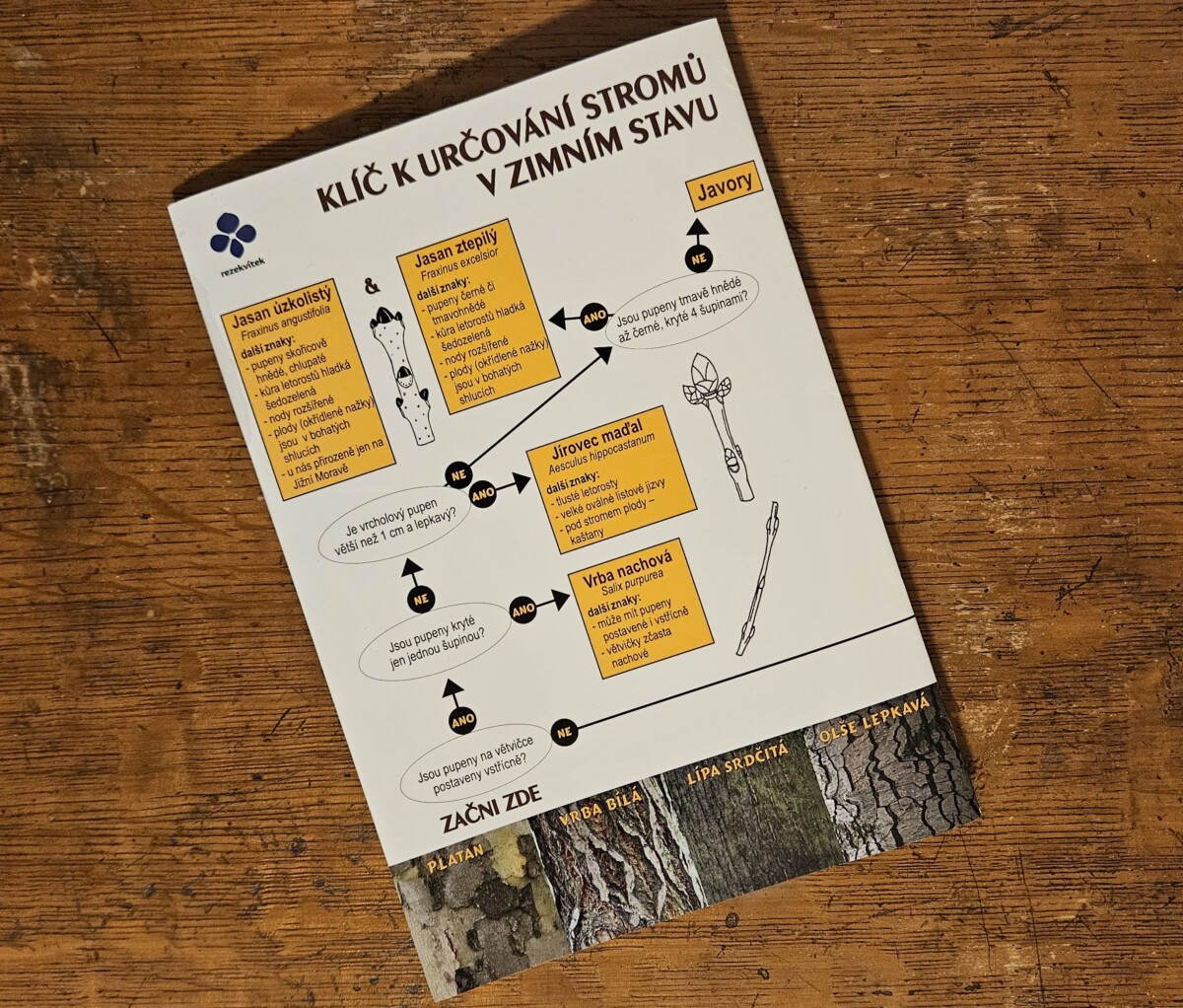 Klíč pupenů je několikastránkové rozkládací leporelo, které je zalakované, aby mu nevadilo vlhko při použití v zimě venku v přírodě. Klíč můžeš zakoupit na e-shopu Rezekvítku, kde najdeš řadu dalších jednoduchých pomůcek, třeba Klíč k určování stromů podle listů. O zimních pupenech píšeme také v článku Pupeny jako poznávací znamení.