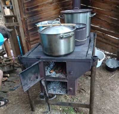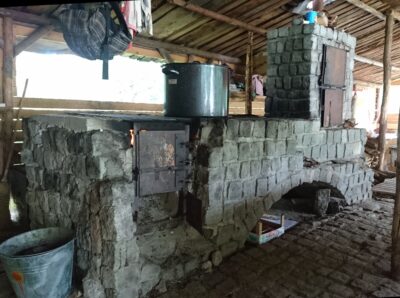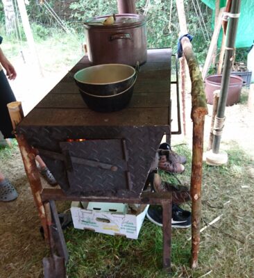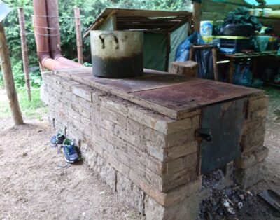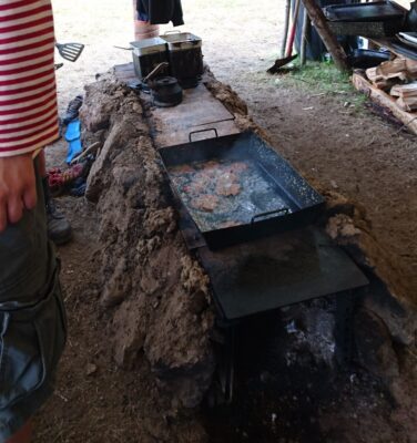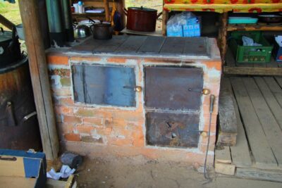 Podívejte se níže na fotogalerii z přestavby táborových kamen, kdy byla původní kamenná kamna nahražena cihlovými. Důvodem byla lepší izolace, snadnější usazení tálů a menší prostor, který cihlová kamna potřebují.