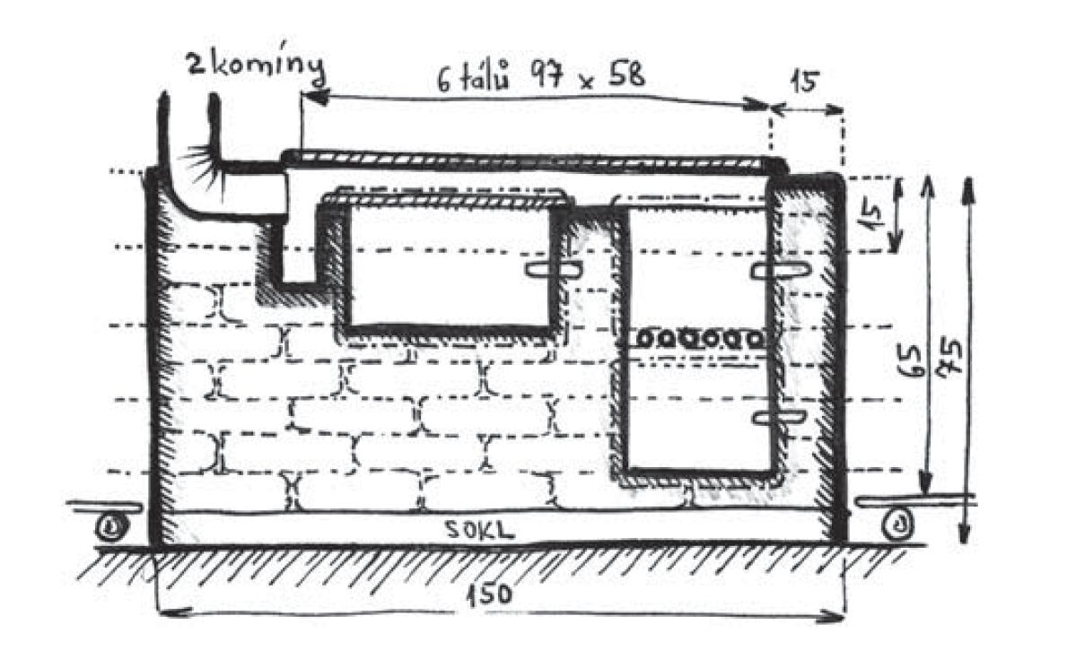 Stejně tak je vhodnější kovový rám pro dvířka topeniště. Ušetří to spoustu paliva a oheň se lépe reguluje. Kamna mohou být o něco nižší než na plánku, ale kuchaři se pak při vaření budou muset hrbit.